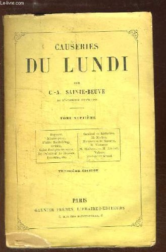 Don't need to bother, only on this site is available book Causeries du Lundi. TOME 7 : Regnard, Montesquieu, L'abbé Barthélémy, Grimm, Saint François de Sales, Le Président de Brosses, Franklin, Cardinal de Richelieu, Necker, Marguerite de Navarre, Mérimée, Michaud, Arnault, Volney, Frédéric Le Grand ....